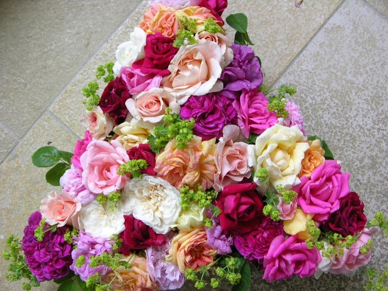 Seit gestern regnet es beinahe ohne Unterbruch, zudem ist es recht kühl (so um die 8°C!). Kein ideales Gartenwetter…. für mich. Habe bloss ein paar Rosenblüten abgeschnitten für ein Geburtstagsgesteck…. der männliche Empfänger hat sich nicht nur über die vielen Farbnuancen, sondern auch über den wunderbaren Duft gefreut.