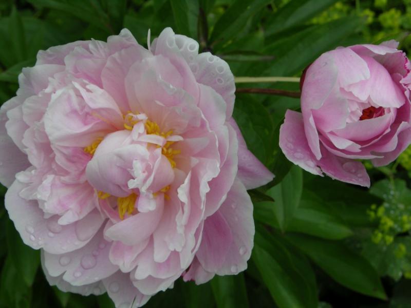 „Amabilis“ is the dark pink peony and „Krinkled white“ the white one (with little damages from the rain).