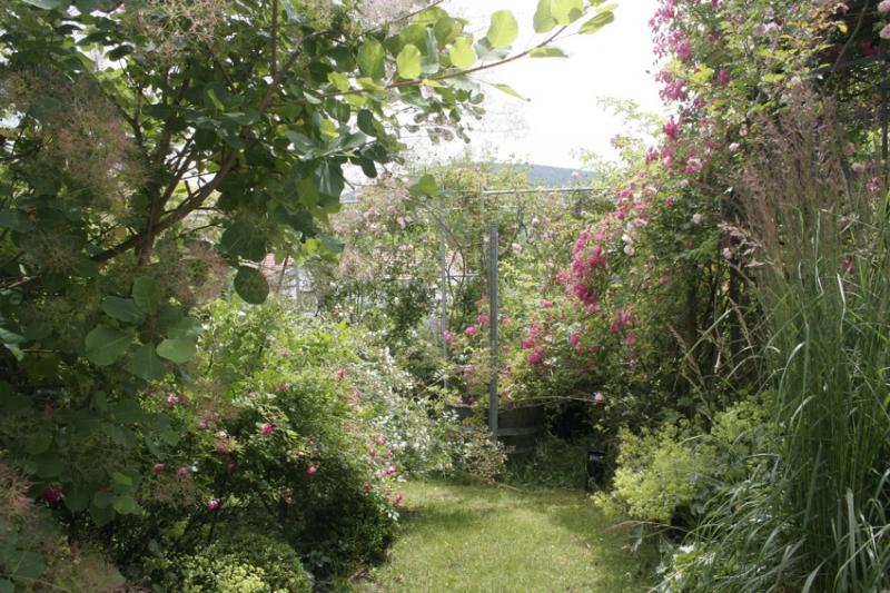 Der Uebergang vom Garten zur Schaf/Pferdewiese wird fliessend durch das hohe Gras.