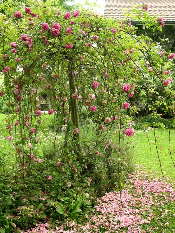 Oft war nicht einmal das tägliche „deadheading“ notwendig. Windboen und Regen liessen die Rosenblüten auf den Boden fallen (Hochstammrose „Paul Noël„).