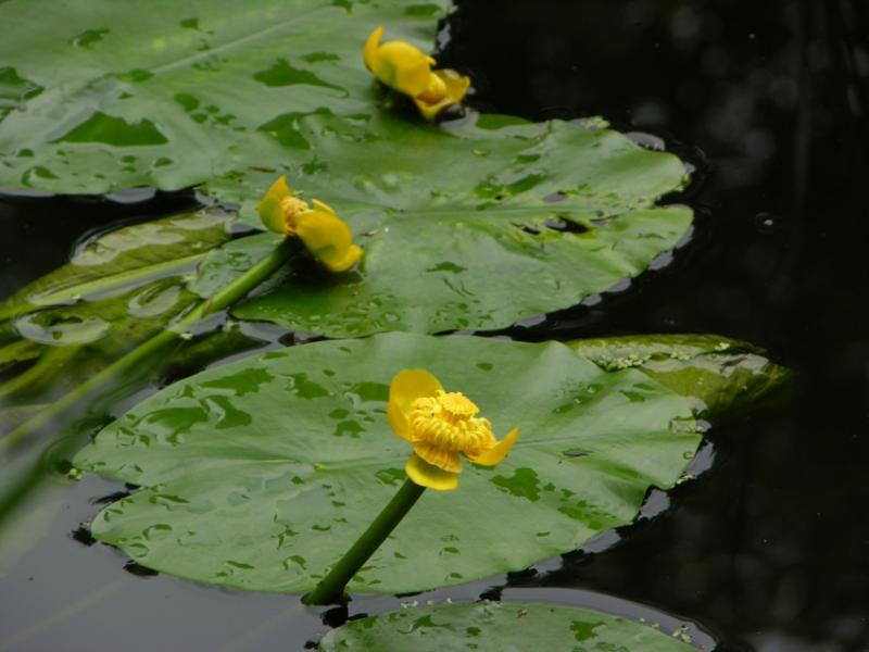 In our little pond I miss the white flowers of the nymphaeas which I had to take out. But I am glad that there is at least a coloured spot in form of this nuphar lutea.