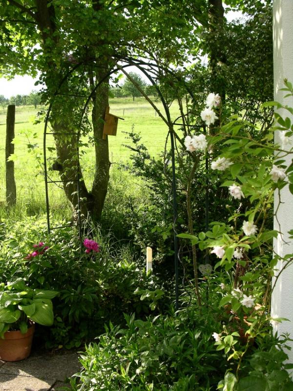 Due to the high grown grass you cannot recognize anymore the exact boundary between our garden and the meadow for the sheep and horses.