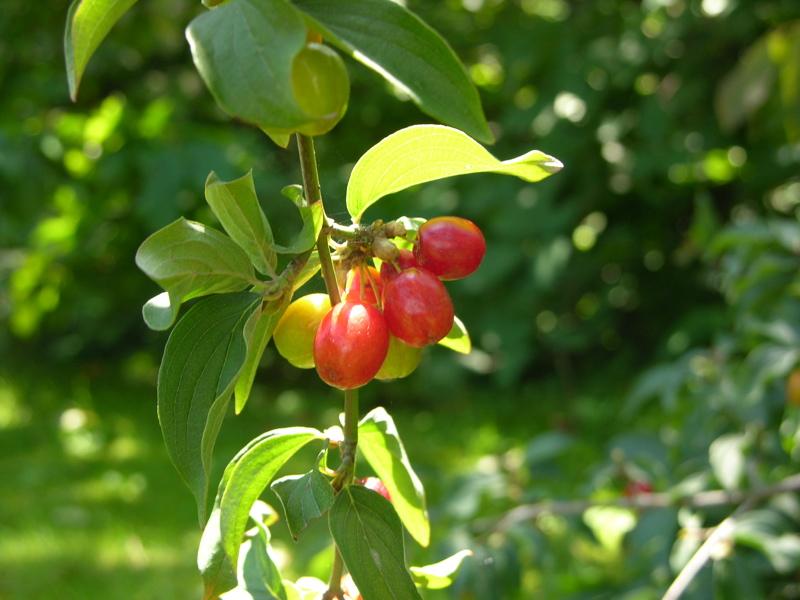 Kornelkirschen (Cornus mas) aus welchen feine Marmelade und Saft gemacht wird. Und nicht weit davon stehen die unverwüstlichen Herbstanemonen (Anemone hupehensis var. japonica), die auch schon seit mehr als 10 Tagen blühen.
