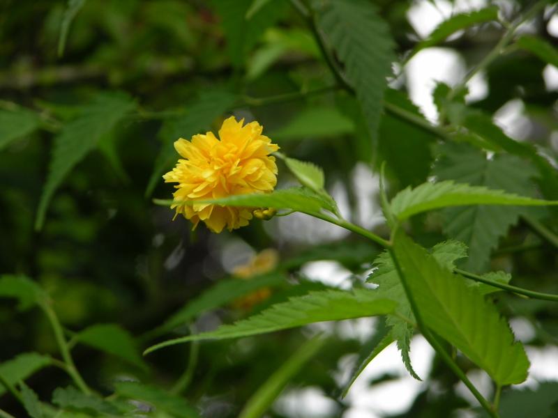 Kerria japonica belongs to the first yellow spots in spring. Now it starts again to a second bloom.