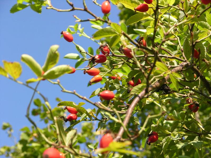 Hagebutten als Zeichen vergangener Blütenfülle und gleichzeitig Vorbote des nahenden Herbstes.