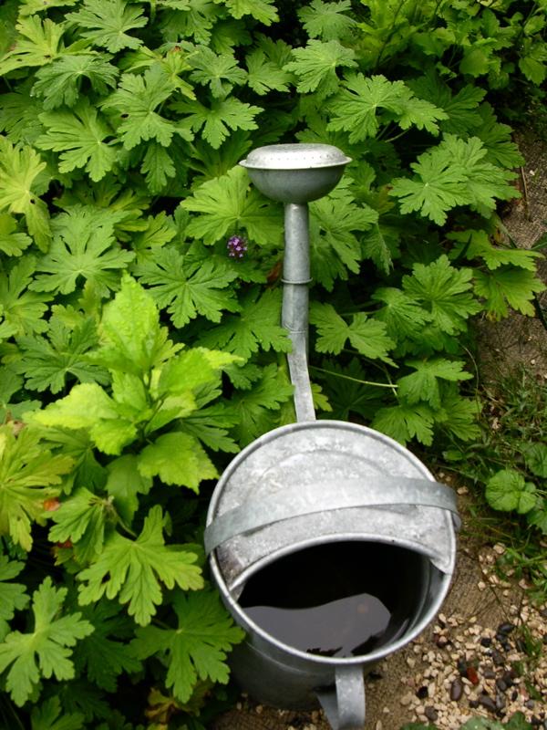 Ich sammle Regenwasser in meinen diversen Giesskannen.