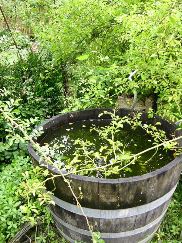 Dieses alte Merlotfass dient als Brunnen in meiner „Wildniss“.