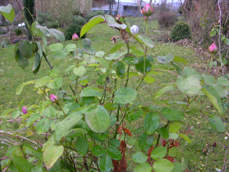 Mary Rose is one of the first and also one of the latest roses to bloom in my garden. This shrub brings a lot of flowers during the whole summer. Even now it has some buds and leaves to show.
