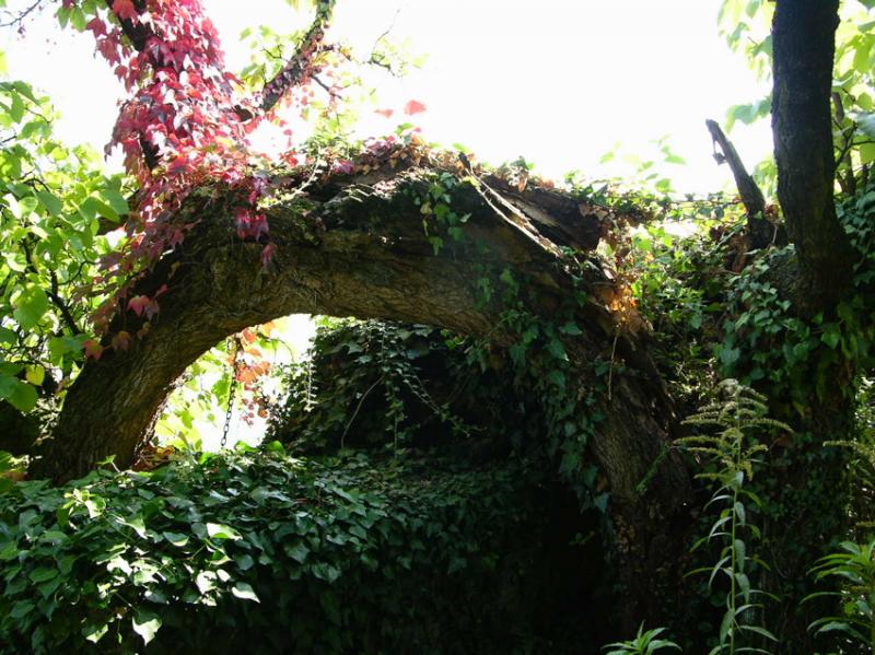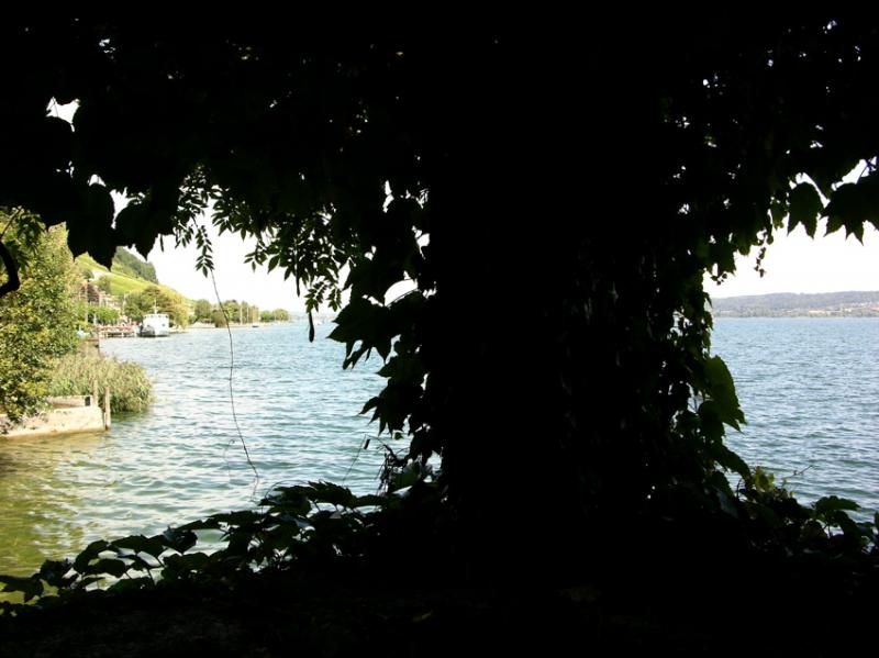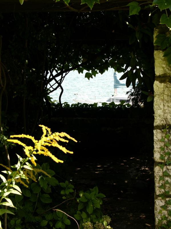 Diese mittlerweile völlig mit Efeu überwachsene Pergola, bietet einen wunderschönen Ausblick auf den See und auch auf die Anlegestelle der öffentlichen Schifffahrtsgesellschaft.