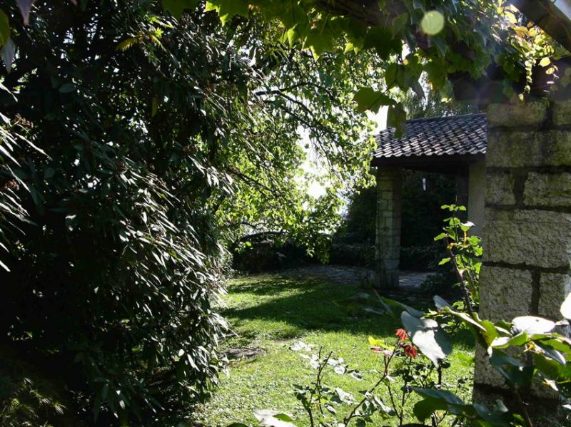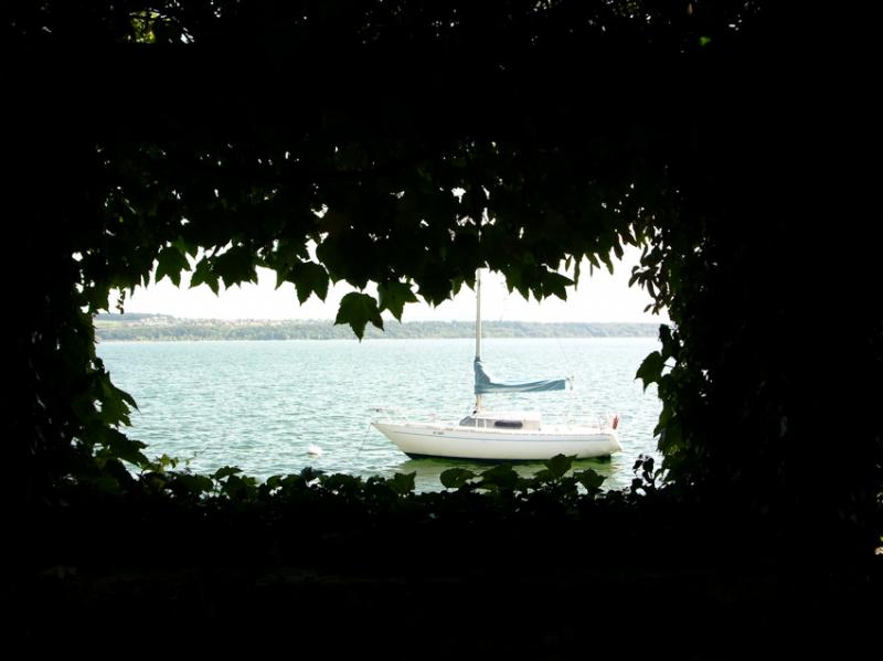 There is an old pergola, meanwhile overgrown with ivy, where you can sit and have a beautiful view to the lake, as well as to the public harbour.
