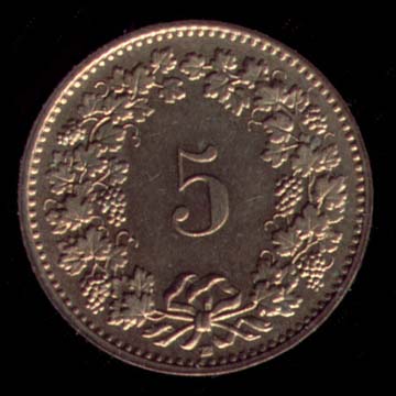 On one side of the 5 Rappen coin you can see a wreath of grapes and its leaves. I like this subject very much as it reminds me where I was born and raised up , i.e. in a wine growing area.