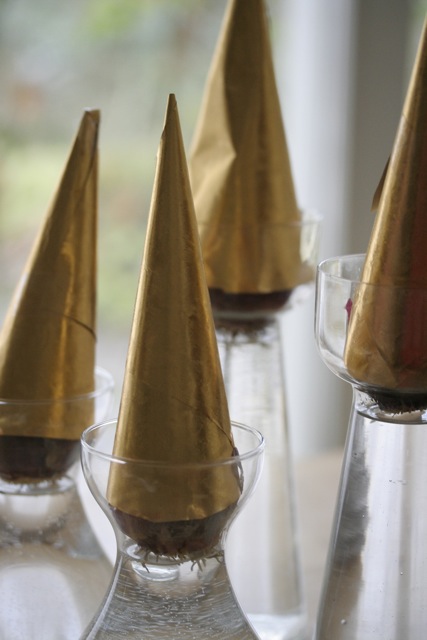 When all the Christmas decorations have disappeared, then soon comes an ardent longing for Spring. I never liked winter very much. In order to get a certain feeling of Spring, I usually grow hyazinths inside. About 8 days ago only, I took the bulbs from its package where I had almost forgotten them.