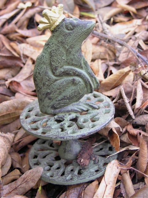 Der Froschkönig wartet geduldig darauf – nicht wachgeküsst zu werden – sondern im Frühling wieder den Schlauch halten zu dürfen.