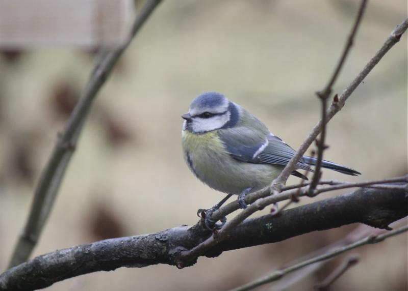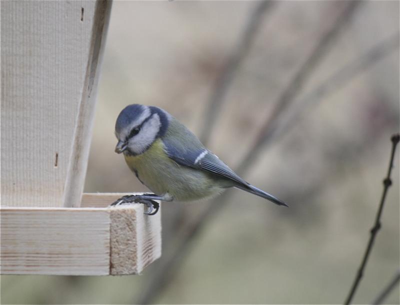 Die Blaumeise (parus caeruleus) hat den optimalen Blick auf das Futterhäuschen wie auch auf die Meisenknödel.