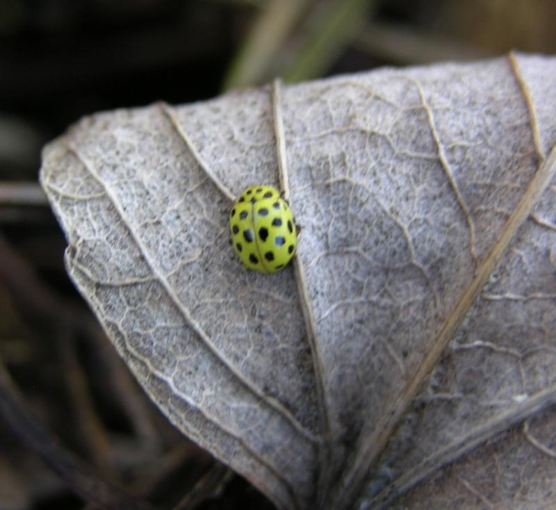 und ebenso winzige kleine Besucher auf einem verwelkten Hostablatt.
